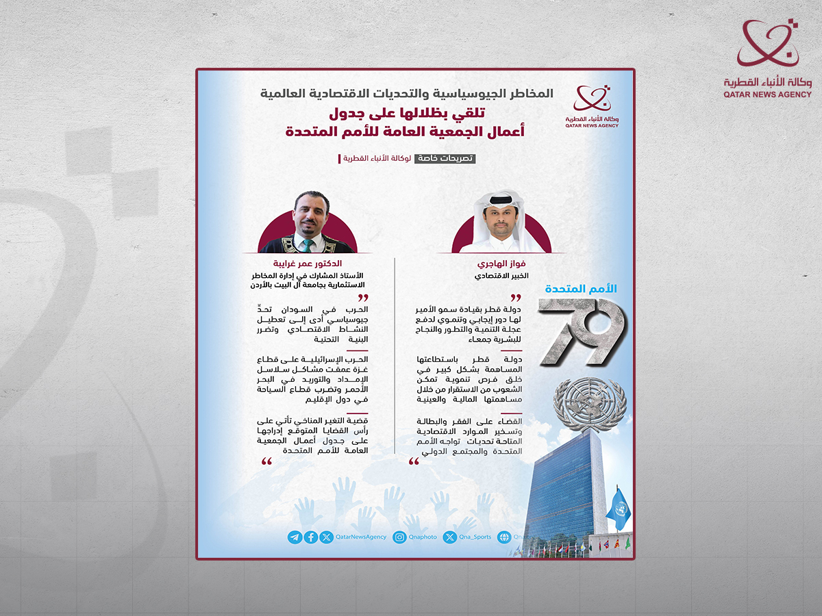 الدوحة في 23 سبتمبر /قنا/ مع تزايد المخاطر الجيوسياسية والتوترات الأمنية والتغيرات المناخية، من المتوقع أن تدرج على جدول أعمال الجمعية العامة للأمم المتحدة في دورتها الـ 79.