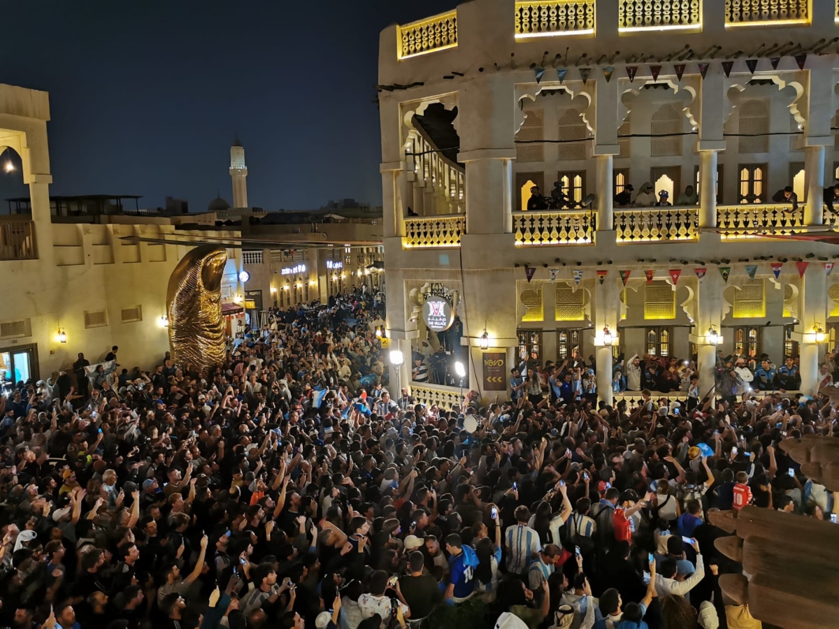 كأس العالم FIFA قطر 2022.. الجماهير الأرجنتينية والفرنسية ترسم لوحة رائعة في سوق واقف