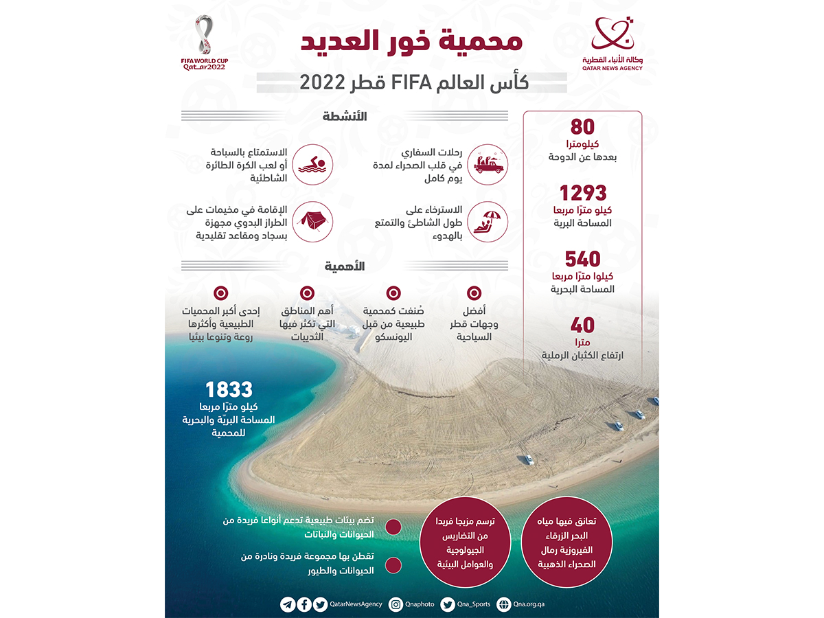 الدوحة في 14 نوفمبر /قنا/ عبر مُغامرات الصيد ورحلات السفاري والرياضات المائية، تعد محمية خور العديد التي تعانق مياه الخليج جنوبي دولة قطر.