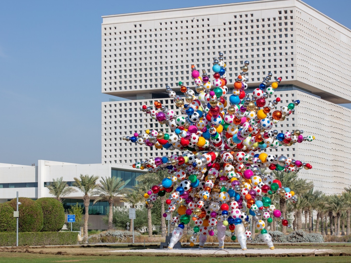 المنطقة الخضراء بالمدينة التعليمية تزدان بالعمل الفني "معا" احتفاء بالمونديال