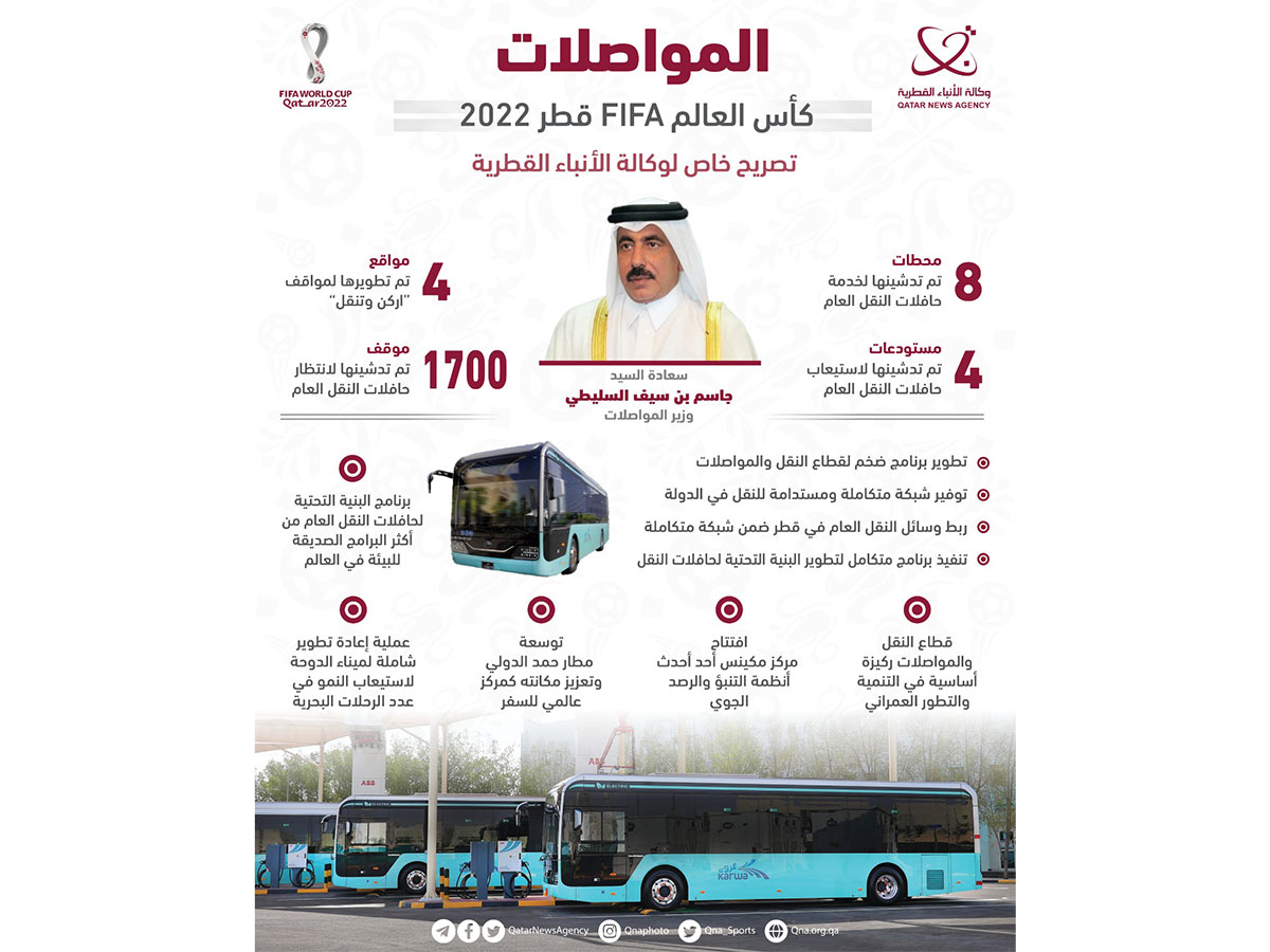الدوحة في 06 نوفمبر /قنا/ مع اقتراب موعد إطلاق صافرة البداية لبطولة كأس العالم FIFA قطر 2022، كثفت شركة مواصلات "كروة" استعداداتها.