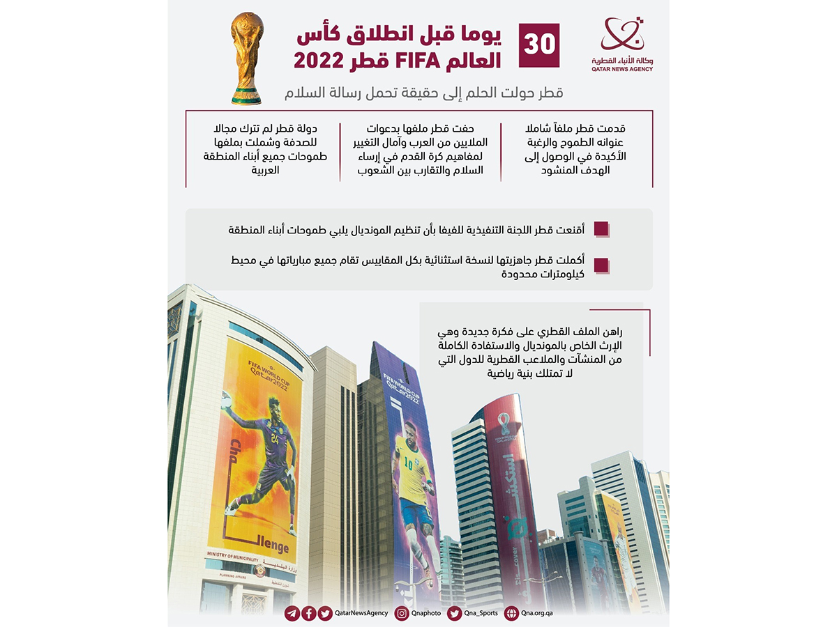30 يوما قبل انطلاق المونديال: قطر حولت الحلم إلى حقيقة تحمل رسالة السلام