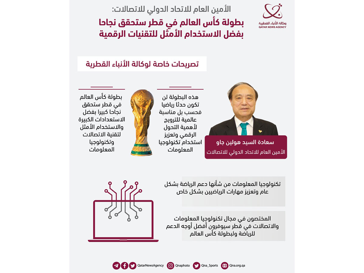 الأمين العام للاتحاد الدولي للاتصالات: بطولة كأس العالم في قطر ستحقق نجاحا بفضل الاستخدام الأمثل للتقنيات الرقمية
