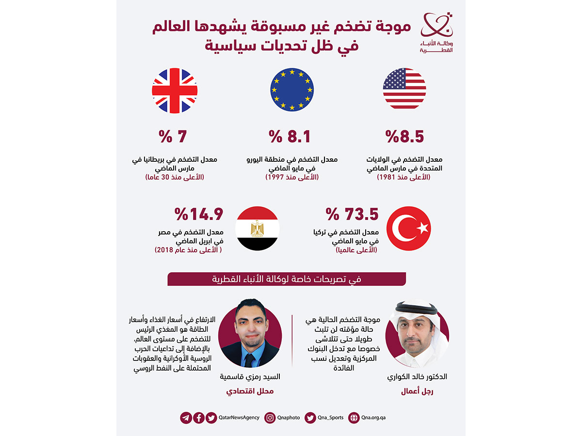 الدوحة في 09 يونيو /قنا/ منذ نحو العامين والعالم بضفتيه: المتقدم والنامي، يعيش موجة تضخم اقتصادي غير مسبوقة،