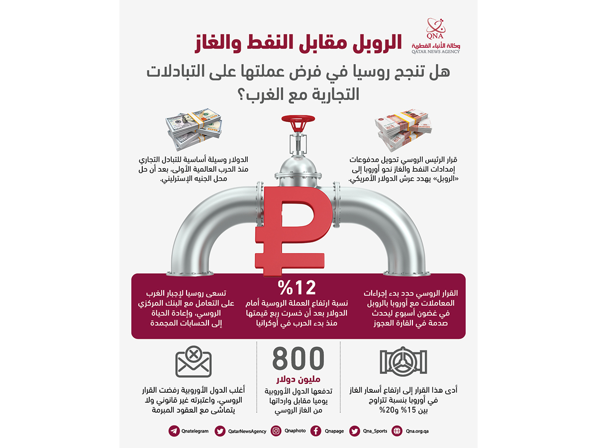 الروبل مقابل النفط والغاز.. هل تنجح روسيا في فرض عملتها على التبادلات التجارية مع الغرب؟