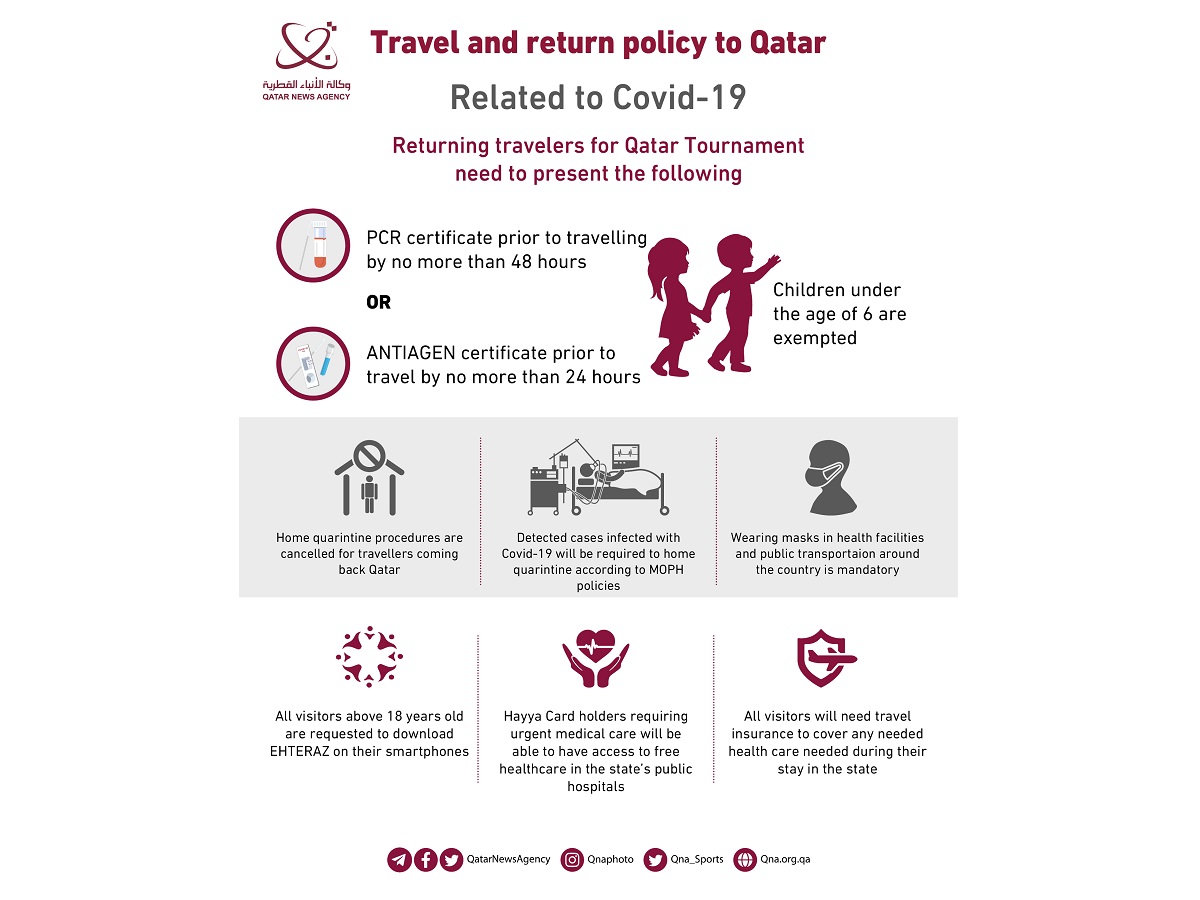 The Supreme Committee for Delivery and Legacy encouraged fans to familiarize themselves with Qatar's COVID-19 Travel and Return Policy, which was updated by the Ministry of Public Health on Aug. 31, 2022.