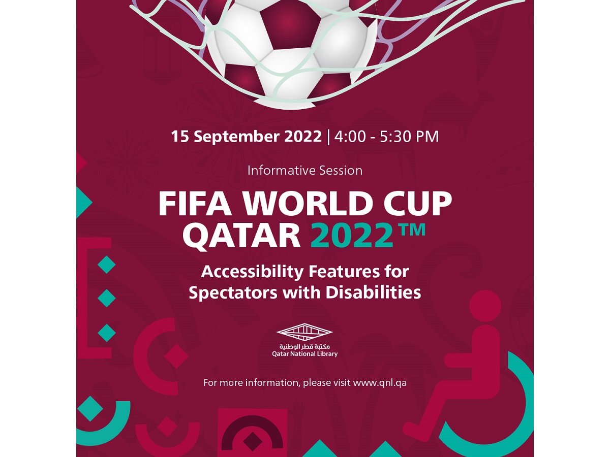 Doha, September 06 (QNA) - Qatar National Library will host 'FIFA World Cup Qatar 2022: Accessibility for Spectators with Disabilities,' on Sep. 15.