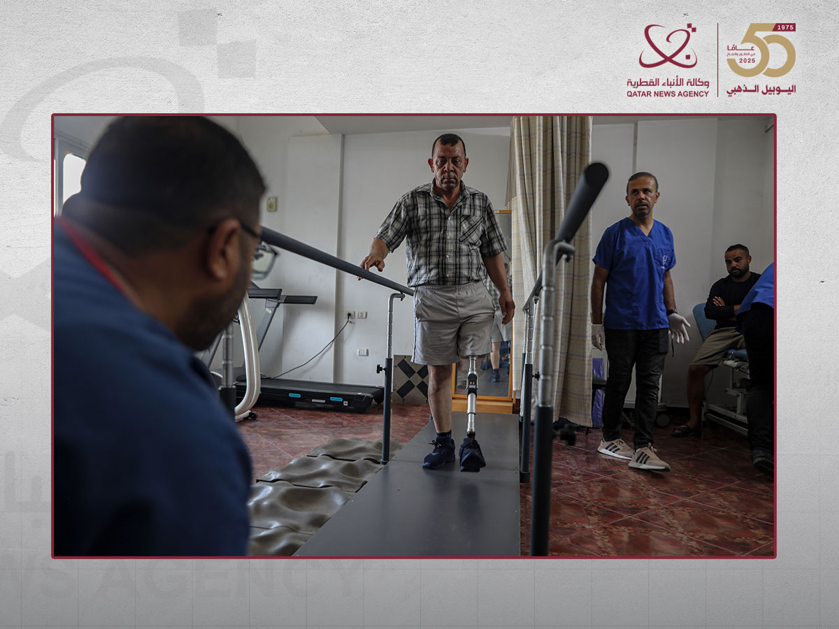 Gaza, November 13 (QNA) - Leaning on crutches that he never imagined would replace his leg, 51-year-old Palestinian Tawfiq Al Sheikh walks slowly through the corridors of Hamad Hospital in Al Zawaida, central Gaza.