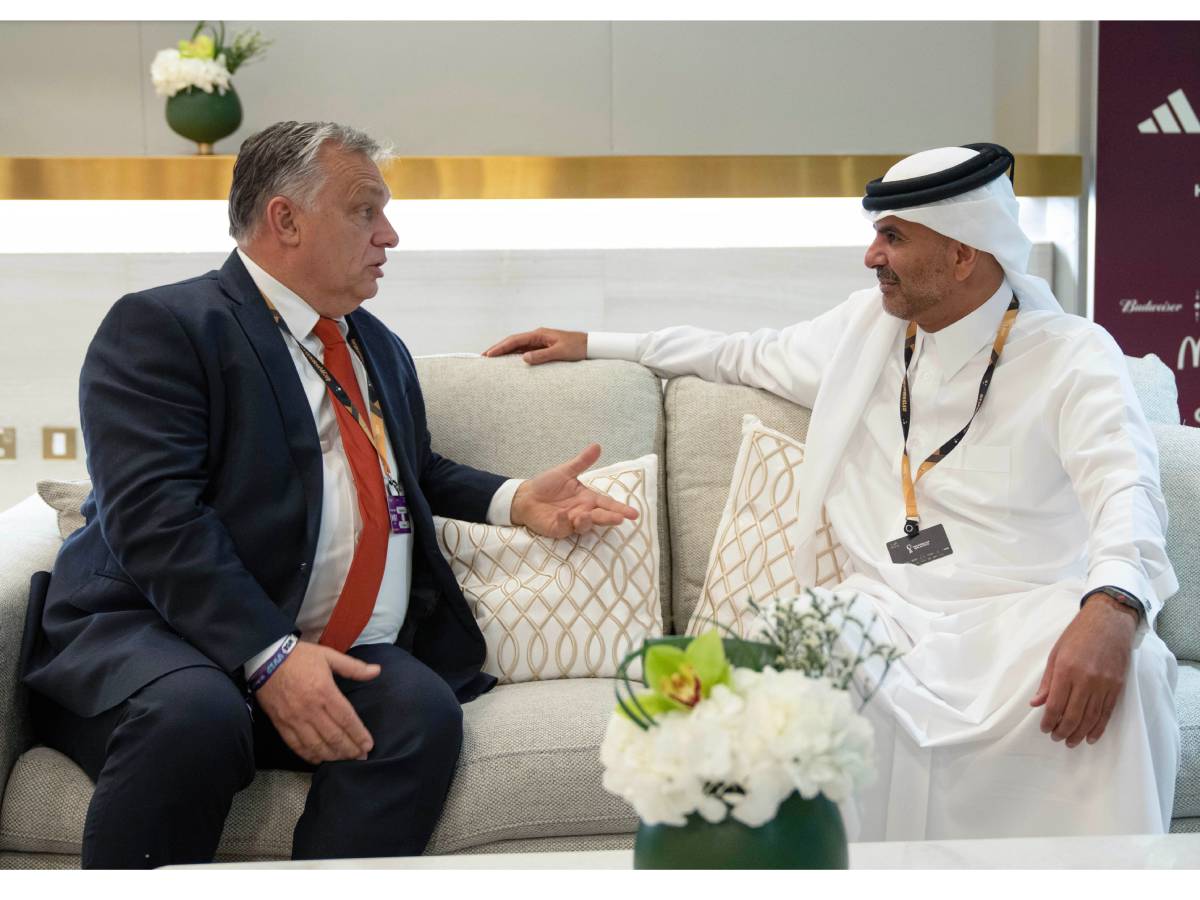 Doha, el 13 de diciembre /QNA/ Su Excelencia Primer Ministro y Ministro del Interior Sheikh Khalid bin Khalifa bin Abdulaziz Al-Thani se reunió hoy en la tarde en el Estadio Lusail con Su Excelencia Primer Ministro de la República de húngaro,
