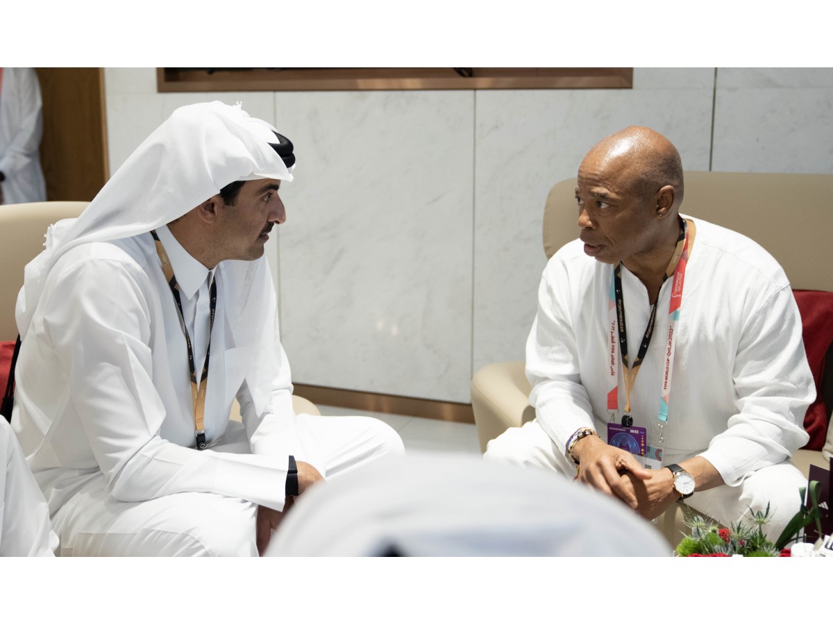 Doha le 02 décembre /QNA/ Son Altesse l’Émir Cheikh Tamim bin Hamad Al Thani a rencontré ce soir, au Stade Al Janoub, le Maire de New York, Eric Adams, qui est actuellement en visite au pays